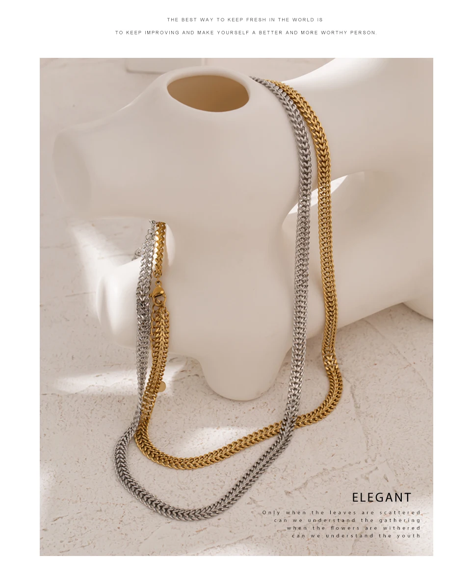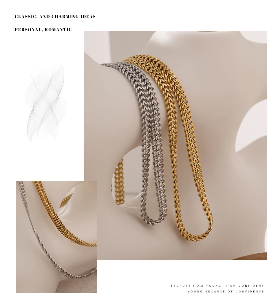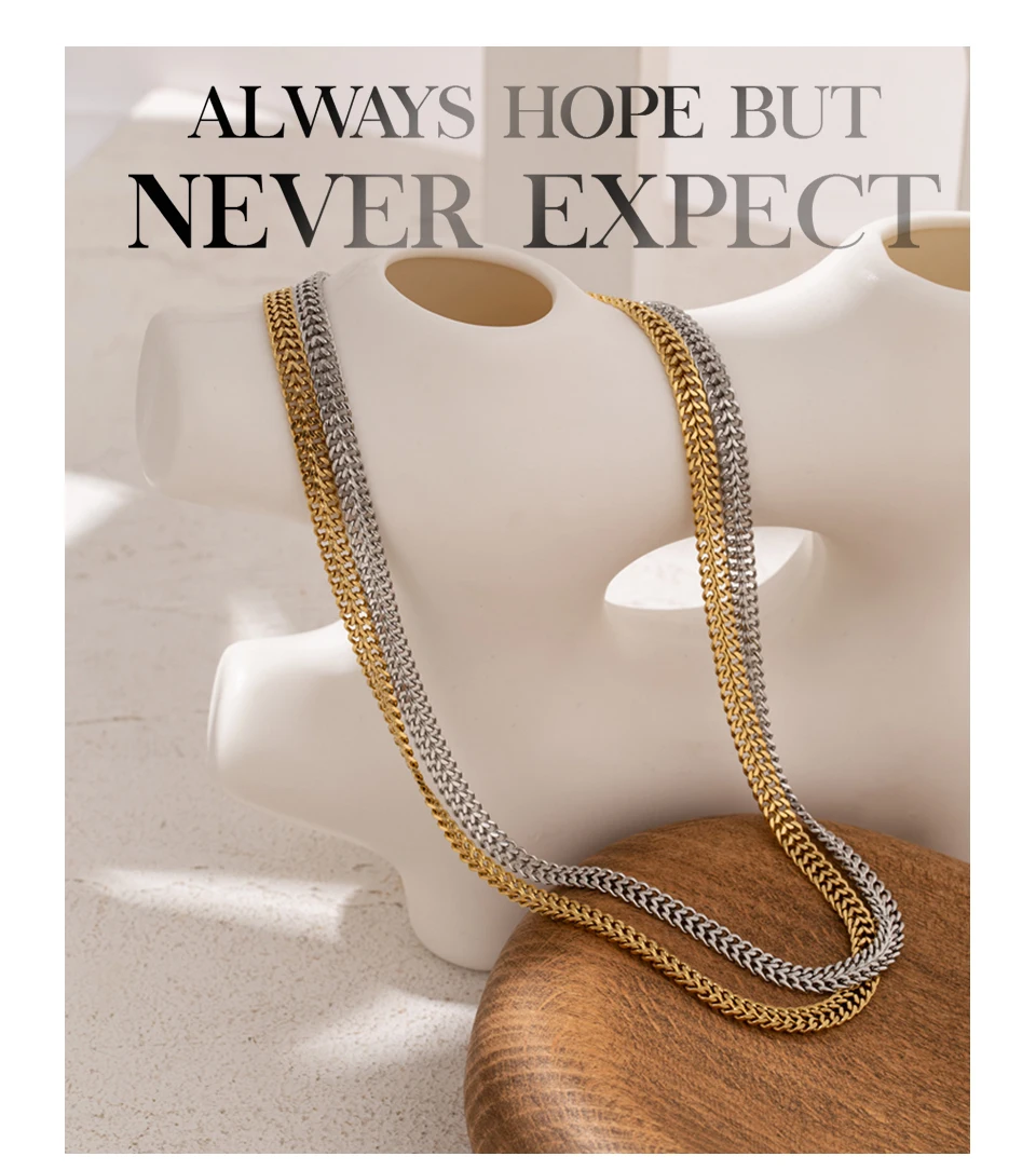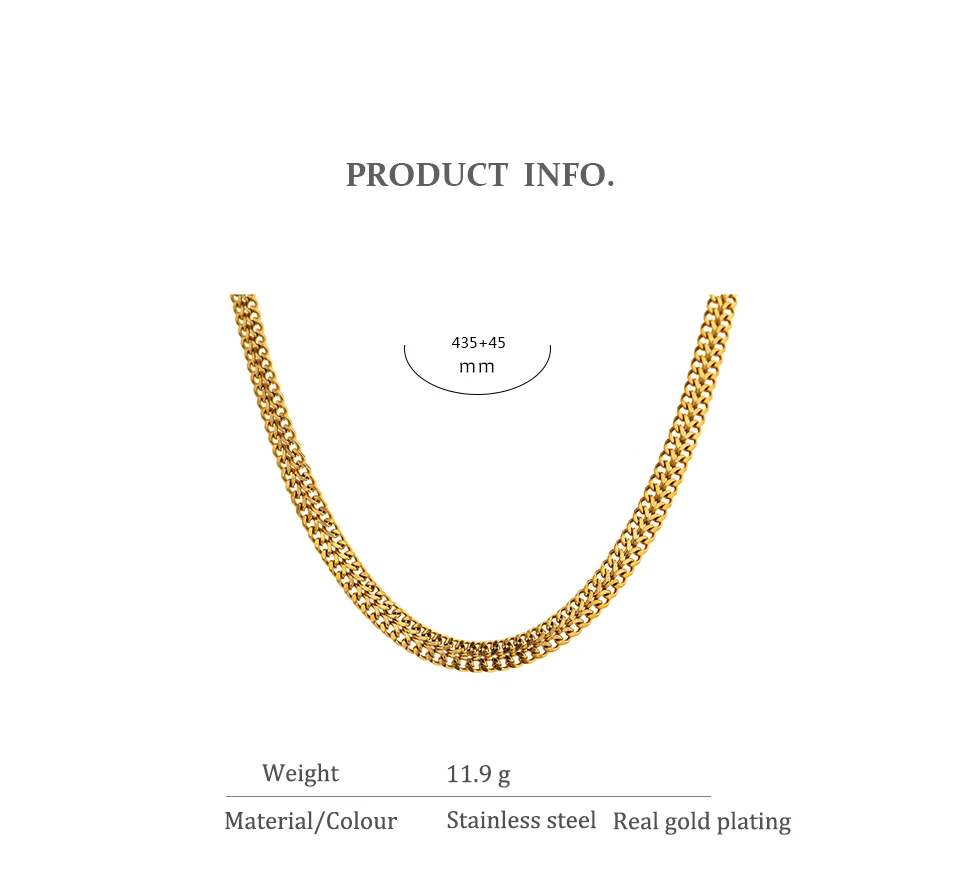 Elevate your accessory collection with these Double Curb Necklaces, expertly crafted from durable stainless steel and finished with a genuine gold plating to ensure lasting shine and resistance to tarnish. Designed with a bold geometric pattern, these trendy chains suit any occasion, from casual parties to stylish events. Their versatile, chemical-free composition makes them safe and compatible with all fashion styles, providing an effortless way to add a modern edge to your look. Enjoy a fashion-forward statement piece that combines durability, style, and skin-friendly materials.