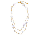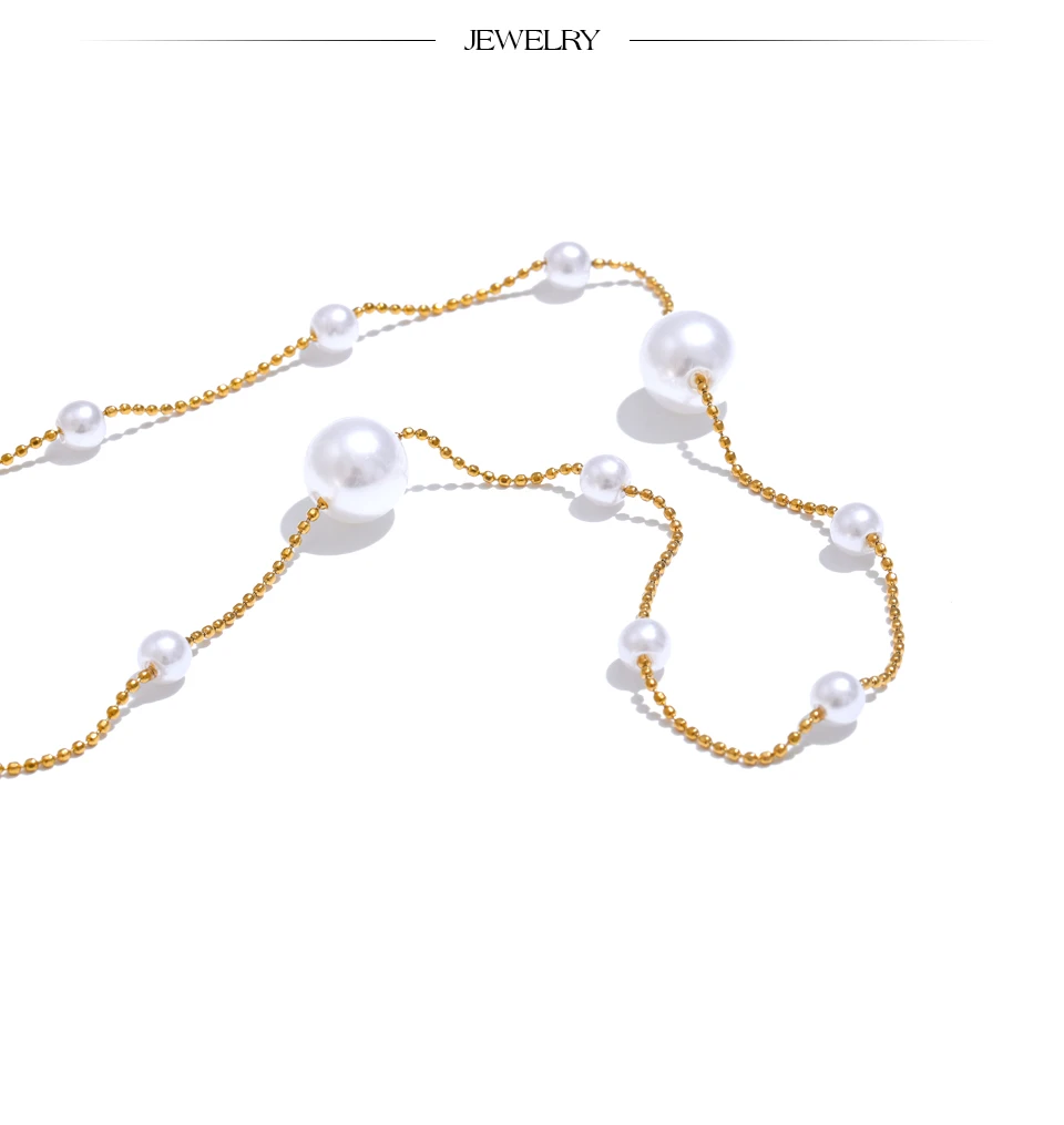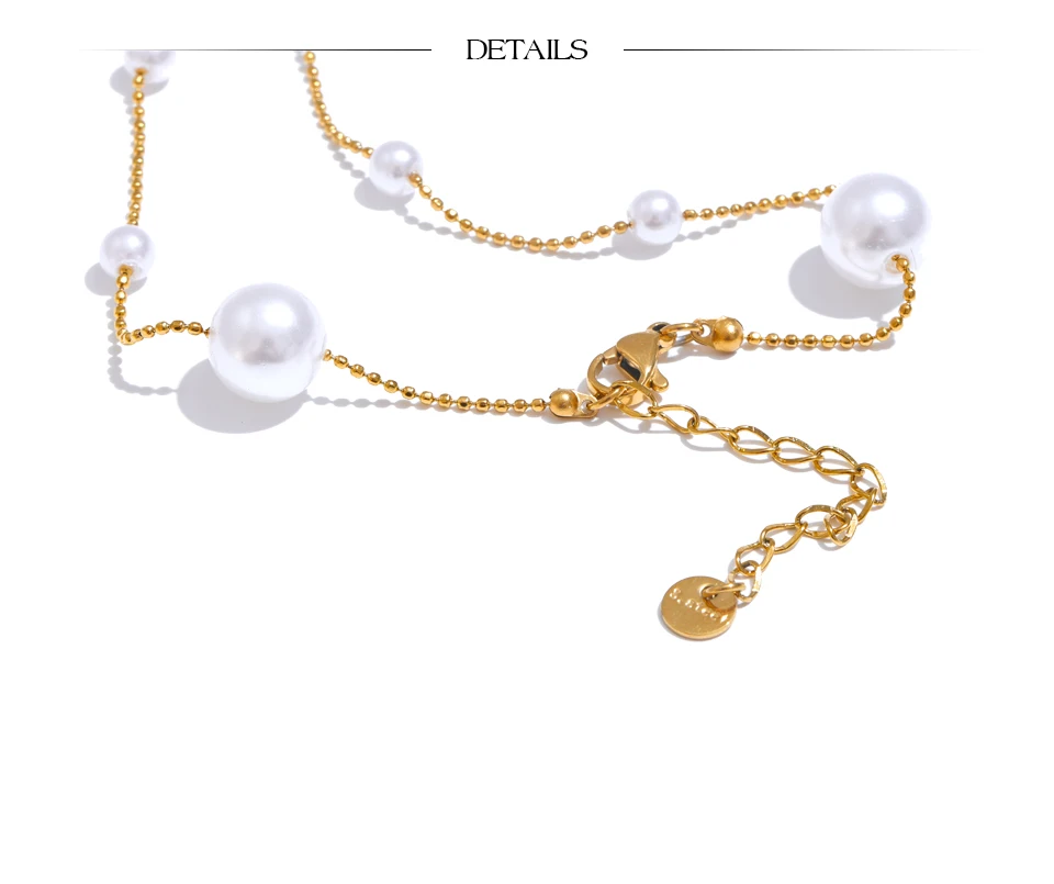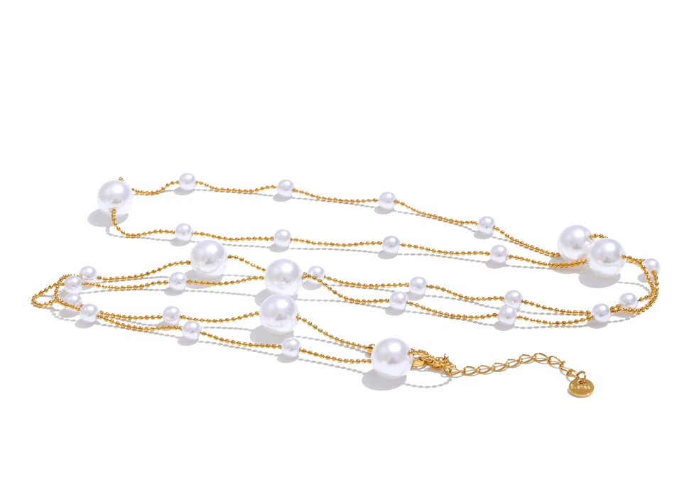 Elevate your style with these expertly crafted Float Necklaces, designed to complement any outfit for parties or special occasions. Featuring a durable link chain made from high-quality stainless steel and finished with a PVD real gold plating, these necklaces offer lasting shine and resistance to wear. The perfectly round simulated pearls are arranged in geometric patterns, adding a modern and trendy touch to traditional elegance. Hypoallergenic and free from high-concern chemicals, this fashion-forward piece combines durability with style, making it an excellent accessory for those who appreciate both sophistication and contemporary design.