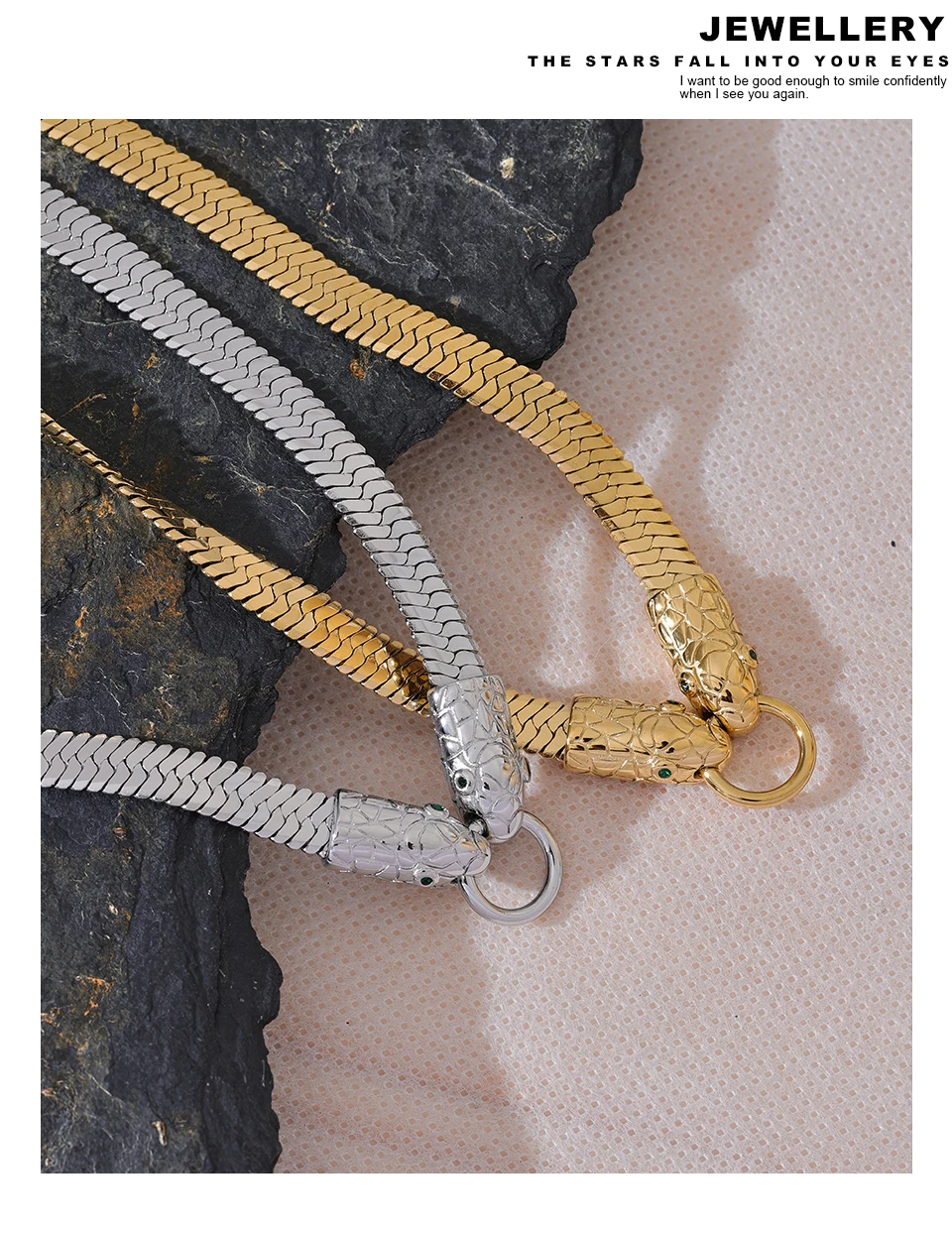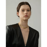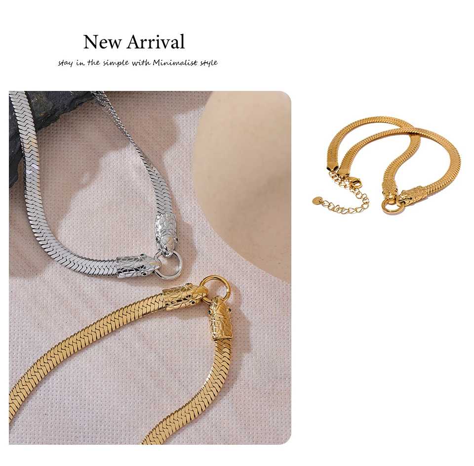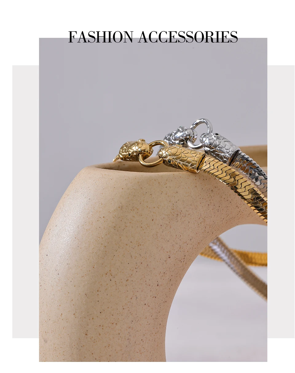 The Serpent Torque Necklaces combines sophisticated design with durable craftsmanship, featuring a stainless steel base coated with PVD real gold plating for lasting brilliance. Its geometric pattern lends a contemporary edge, perfect for fashion-forward individuals seeking a striking yet versatile accessory. Free from high-concern chemicals, this piece ensures skin compatibility and longevity. Engineered to suit all styles, the necklace’s timeless yet trendy appeal makes it an essential addition to any jewelry collection. Ideal for elevating both casual and formal outfits, it offers a refined statement of modern elegance and durability.